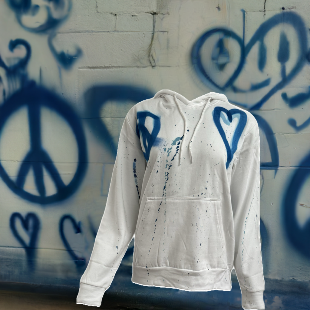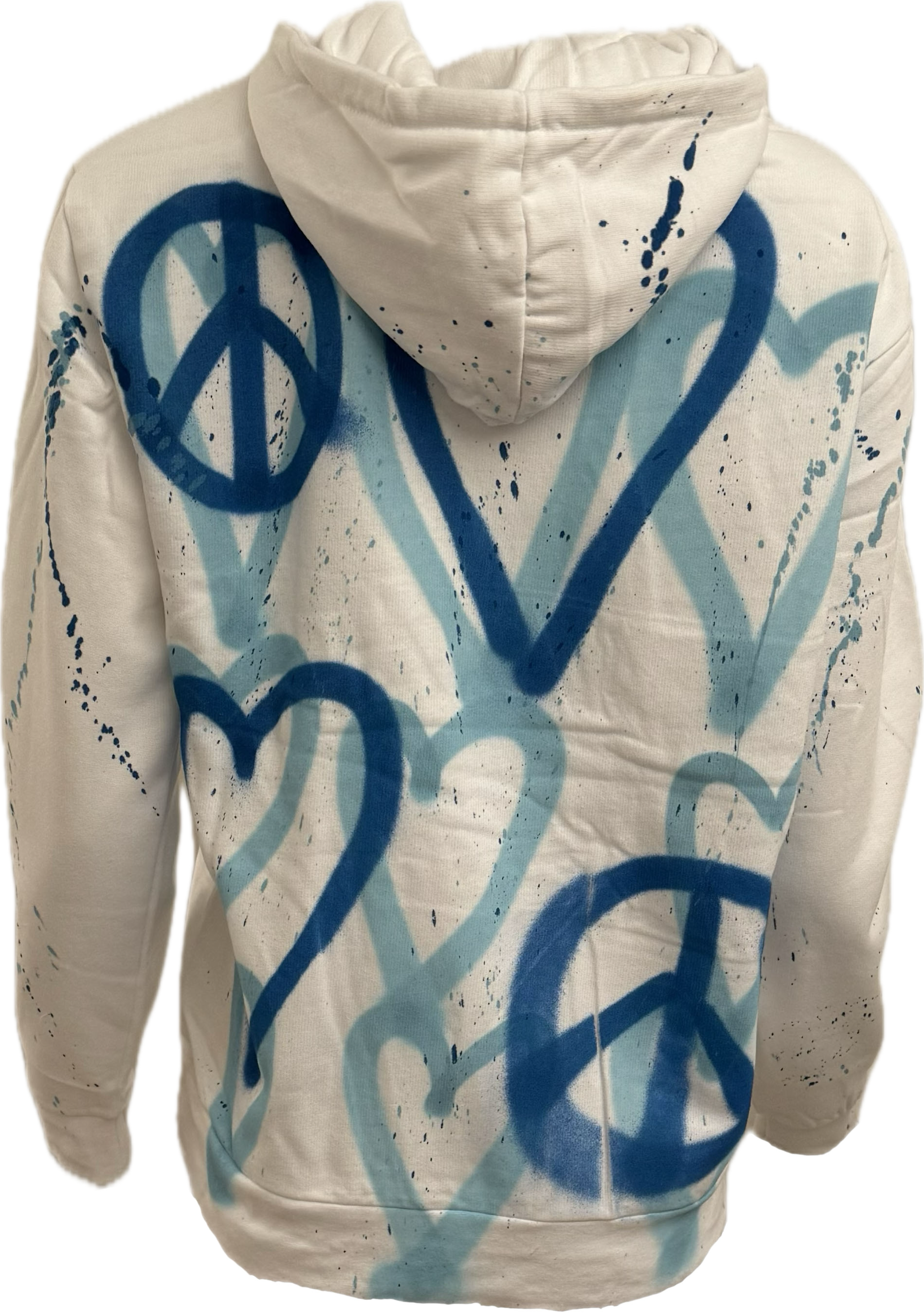 Blue Love Hearts with Peace sign Graffiti Hoodies.