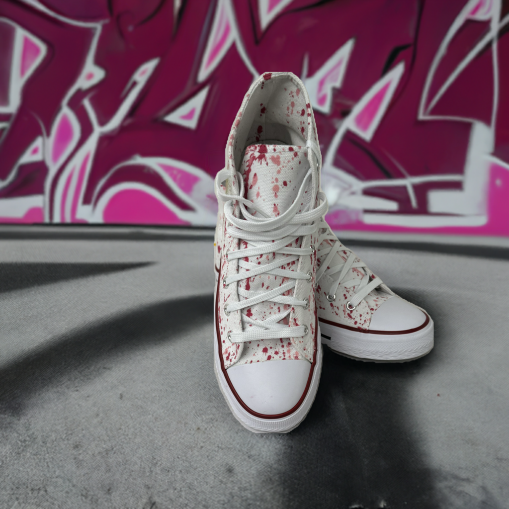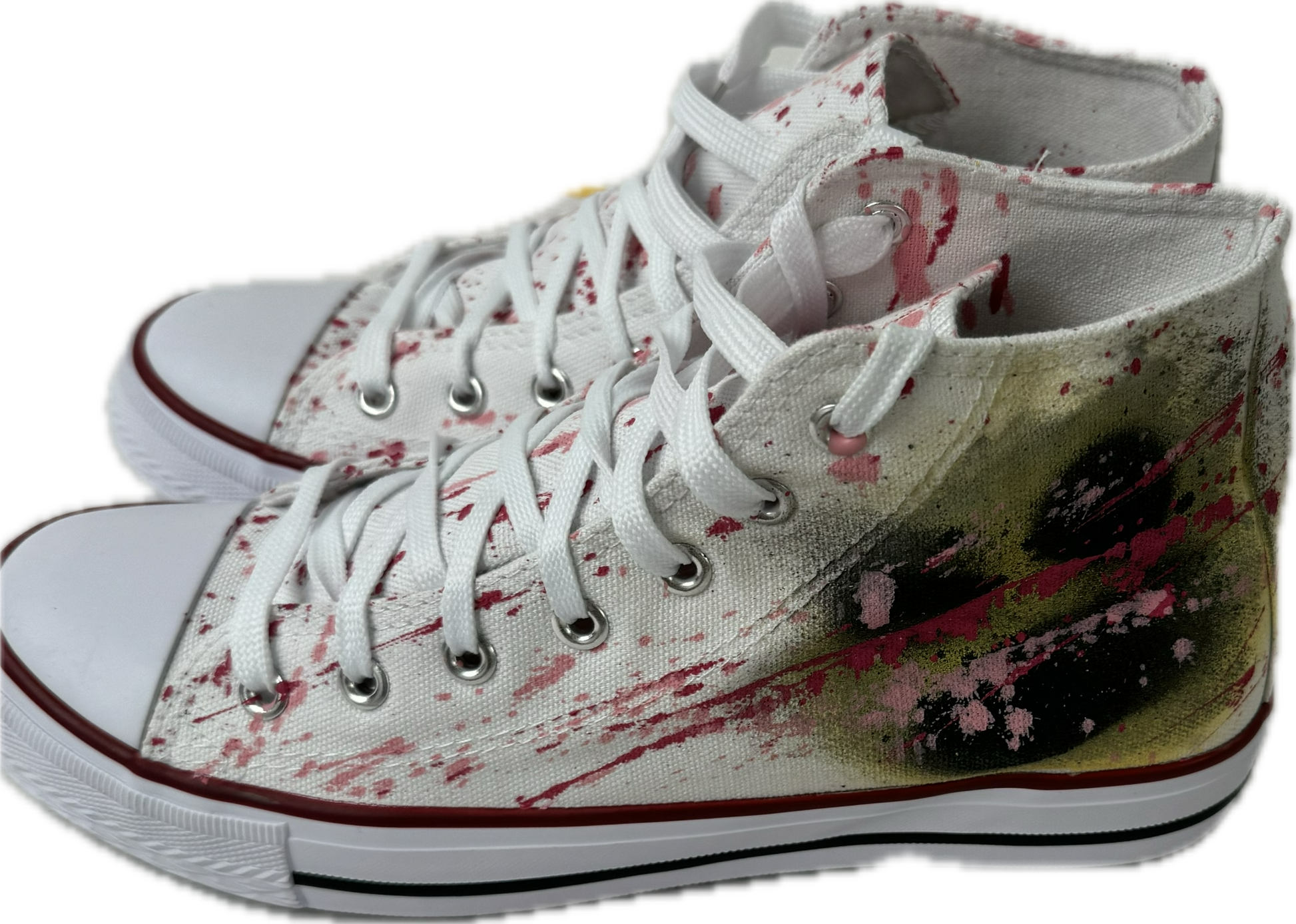 Get ready to make a statement with these one-of-a-kind Northeast Fashion House Graffiti Baseball Canvas Boots in pink! Featuring a playful smiley face design on the sides, these boots will not only stand out but also show off your fun and quirky personality. Hit the streets in style and let your shoes do the talking!