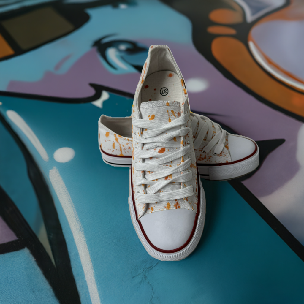 Northeast Fashion House Graffiti Baseball Canvas Shoes Orange.